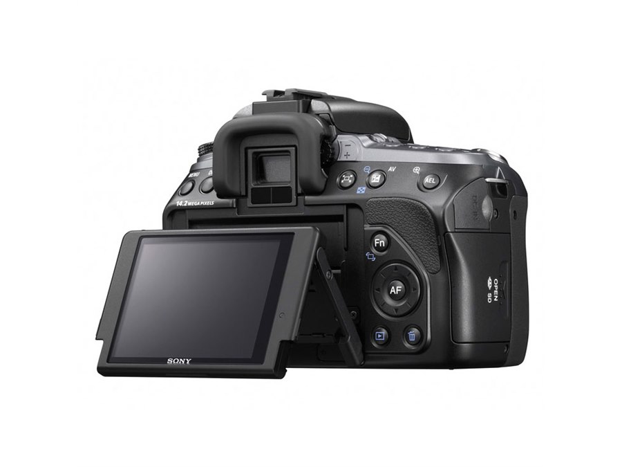 このほか、「α380」「α330」「α230」と比較して約2倍の色域と高コントラストを実現した3型“エクストラファイン液晶”モニターを採用。ボディ背面に対し下向き・上向きとも90度までチルト可動可能なほか、明るさセンサーを利用し、周囲の明るさに応じてカメラが自動的に液晶の輝度を上げる「明るさ自動調整機能」を備えている。