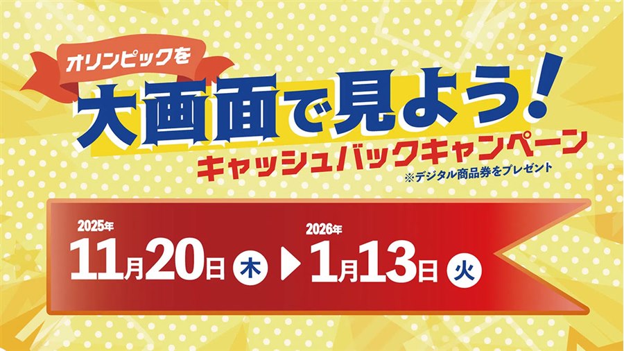 2025年11月20日から2026年1月13日までの購入対象期間中に、対象モデルを購入してLINEから応募することで、最大100,000円の「Visa eギフト」商品券がキャッシュバックされる。応募期間は2026年2月15日まで。