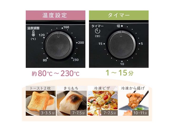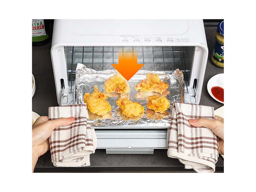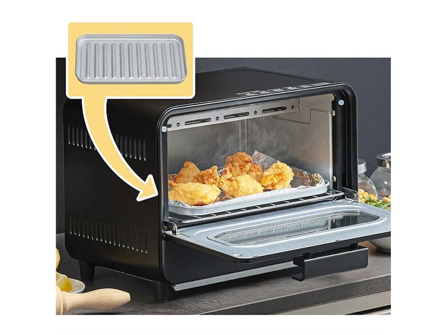また、1〜15分のタイマーを搭載。出しやすいスライドオープンドアを採用するほか、油の出やすい食材などに便利なトレーが付属する。