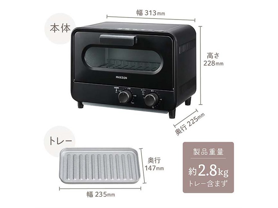 MAXZEN、80〜230度の温度設定に対応したトースター「MTC-TD01」