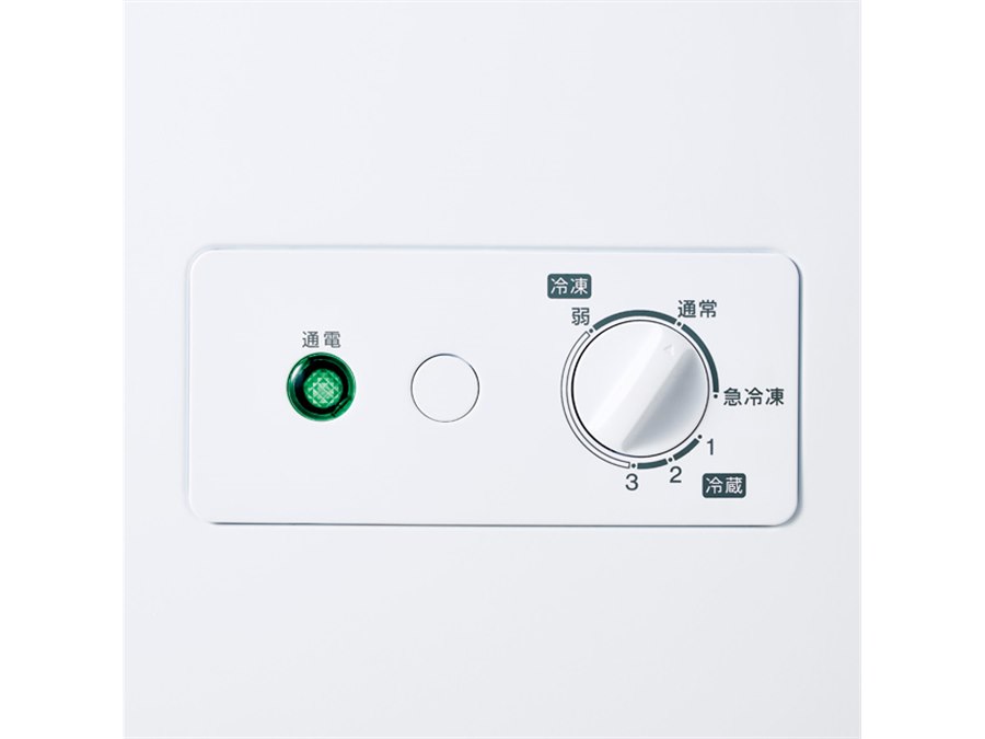 冷蔵ストッカーとしても利用可能な、冷凍/冷蔵の切り替えに対応した200L冷凍庫。ダイヤル式の簡単操作を採用し、冷凍は3段階(急冷凍/通常/弱)、冷蔵も3段階(1/2/3)で温度設定を行える。