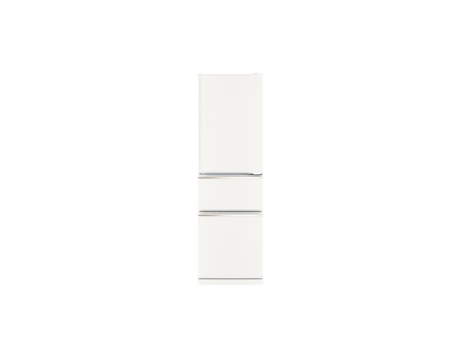 定格内容積は、「MR-CX37M」が365L(冷蔵室215L、野菜室70L、冷凍室80L)、「MR-CX33M」が330L(冷蔵室180L、野菜室70L、冷凍室80L)。年間消費電力量は「MR-CX37M」が335kWh/年、「MR-CX33M」が325kWh/年。右開き、左開きの2タイプのドアを用意する。
