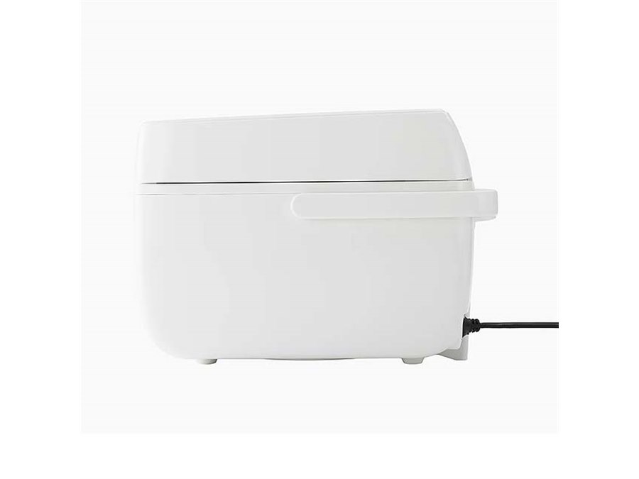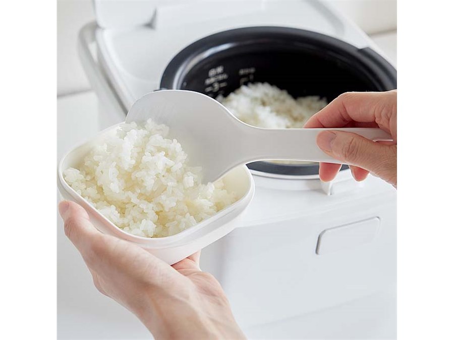 このほか、シンプルなスクエアデザインを採用。本体サイズは約230(幅)×190(高さ)×280(奥行)mm。重量は約3.7kg(本体および内釜)。ボディカラーはホワイト。しゃもじや計量カップが付属する。