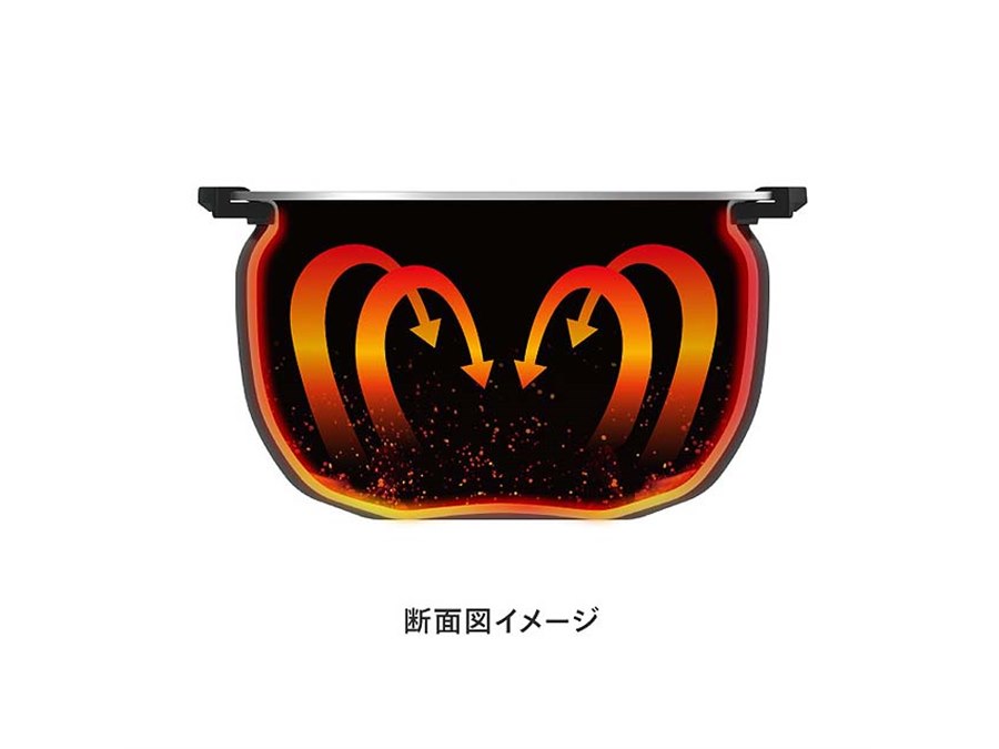 3合炊きで手軽においしいごはんが炊けるコンパクトな炊飯器。釜の温度を一気に高温まで引き上げる1000Wの大火力IHヒーターと、特徴的な形状の厚熱火円釜(あつあつかえんがま)で釜内に大きな熱対流を起こす「高速烈火炊き」を採用しており、お米のひと粒ひと粒に芯まで熱を伝え、ふっくらとしたごはんを炊き上げられる。
