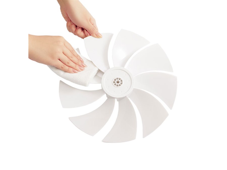 本体は工具なしで分解でき、前ガード、羽根、後ガードを水洗い(※2)することが可能。収納時はスタンドを折りたたむことで、奥行約15.6cmのコンパクトなサイズで収納できる。