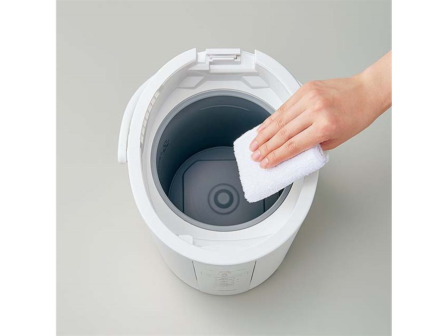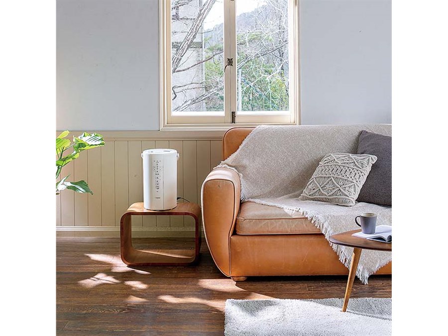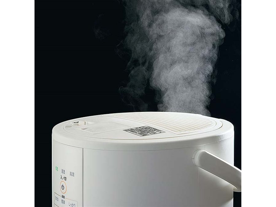 フィルター不要な独自の広口容器の形状で、給水・手入れがしやすい構造を施したスチーム式加湿器。沸とうさせた清潔な蒸気を約65度まで冷まして加湿するという。「チャイルドロック」「ふた開閉ロック」「転倒湯もれ防止構造」といった安心設計を採用した。