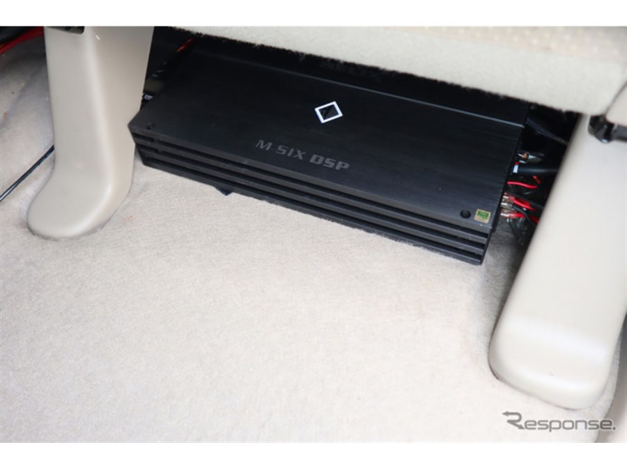 ケンウッド・MDV-M809HDWナビを軸とした構成でスピーカーはモレル・MAXMO ULTRA 603MK2を使った3ウェイで、サブウーファーはダイヤトーン・SW-G50を一発、エンクロージャーに収めてラゲッジにセット。DSPとパワーアンプは、ヘリックス・M-SIX DSP(アンプ内蔵型100W×6ch)とサブウーファー用にM-ONE(D級モノ@240W)ともに前列シート下にセット。