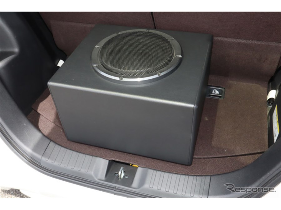 スピーカーはマニア間で今、話題となっているブラムの新シリーズ「Signature Multix Barrel」を導入。ユニットはAMT-1(エア・モーション・トランスフォーマー)ツィーター、MB3(ミッドレンジ)、MB6P(ミッドバス)でサブウーファーはフォーカル製でリアラゲッジ床下にビルトイン。再生プレーヤーはソニー・ウォークマンでDSPはヘリックス・DSP PROMk2をセレクト。