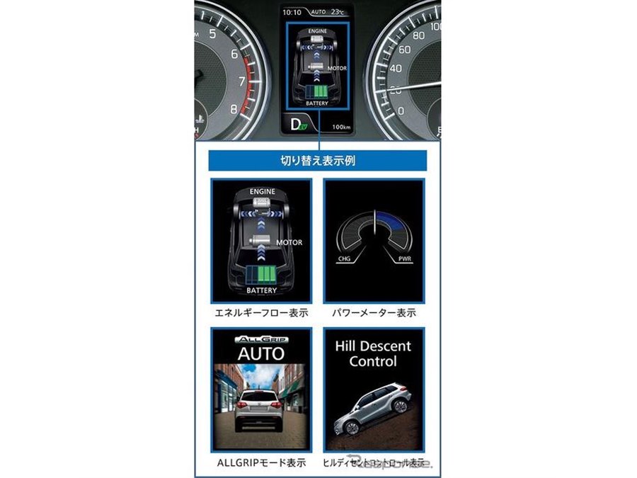 パワートレインでは、優れた熱効率がもたらす燃費性能と力強さを兼ね備えたK15Cデュアルジェットエンジン、効率的な動力伝達とダイレクト感のある加速フィーリングを実現した6AGSのトランスミッションを国内で初採用。これらと高出力モーター「ALLGRIP」との連携により、優れた走行性能を発揮する。走行モードはEV走行の頻度を高めた「エコ」と、力強くキビキビした走りの「標準」の2種類を搭載。状況に応じてモードを選択できる。