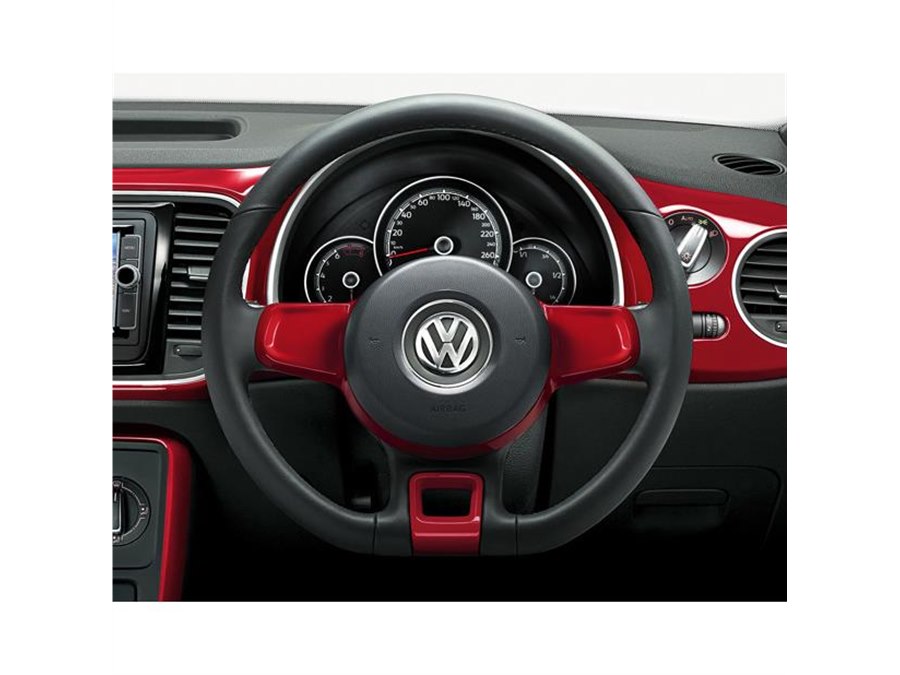 今回の特別仕様車は、1.2リッターターボ車の「ザ・ビートル デザイン」をベースに、エクステリアの各所をブラックでコーディネートした300台の限定モデルである。インテリアについても、ダッシュパッドやドアトリム、ステアリングトリムに加え、センターコンソールもボディーカラーと同色とすることで、ブラックとのコントラストを際立たせている。