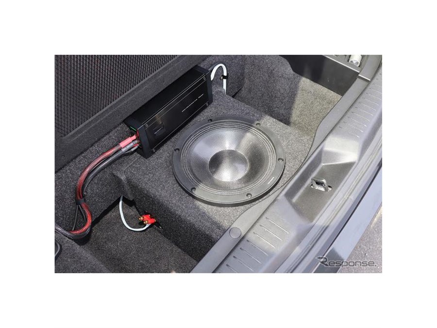 香取さんは、当イベントの直前に完成したばかりだというVW・T-Rocでエントリーした。ところで香取さんはこれまで音質を追求した究極的なサウンドコンペカーの製作にも取り組んできたのだが、当車では「普段使いするクルマでも良い音を」とのコンセプトでシステムメイクしたという。使用機材のラインナップは以下のとおり。ソースユニットとしてソニーのウォークマンを使い、プロセッサーにはブラックスのBRAX DSPをセレクト。パワーアンプはシンフォニ/クワトロリゴで、フロントスピーカーとサブウーファーはステッグで統一した。試聴してみると、S/Nが高く情報量が豊富。そして定位感も良好でサウンドステージのリアル度も高い。ハイレベルなHi-Fiサウンドが展開されていた。