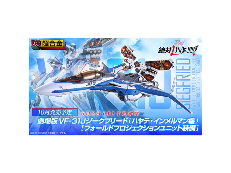 バンダイは、「DX超合金 劇場版VF-31Jジークフリード(ハヤテ・インメルマン機)【フォールドプロジェクションユニット装備】」を10月より発売すると発表した。