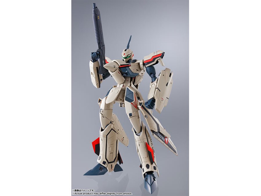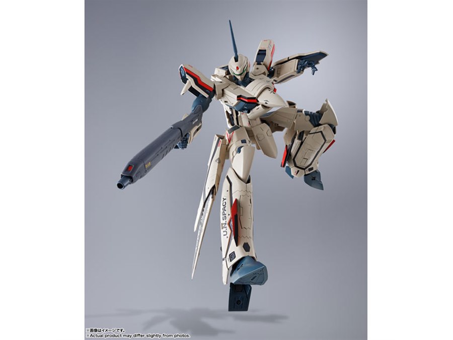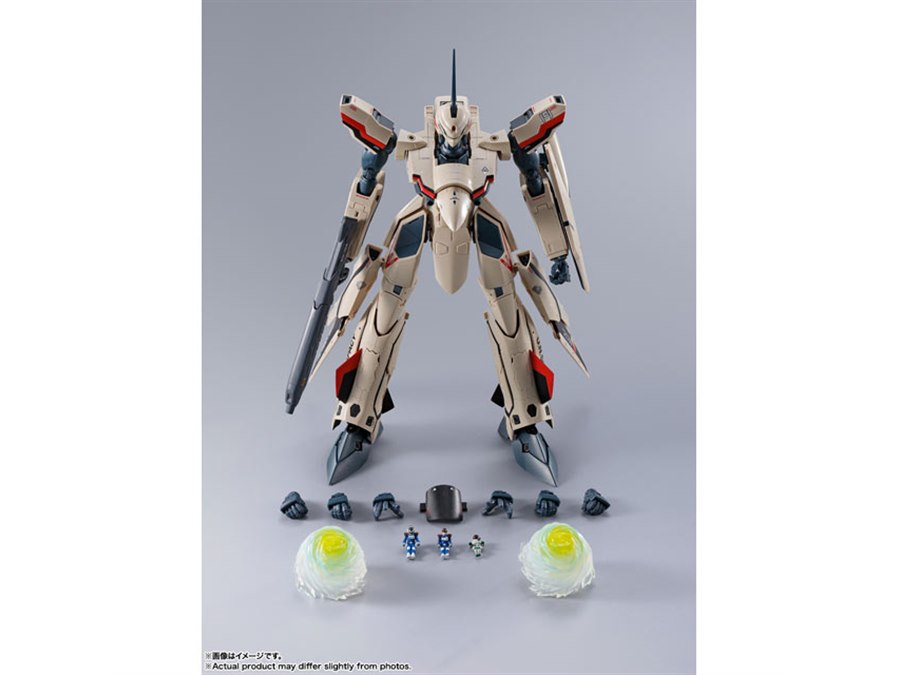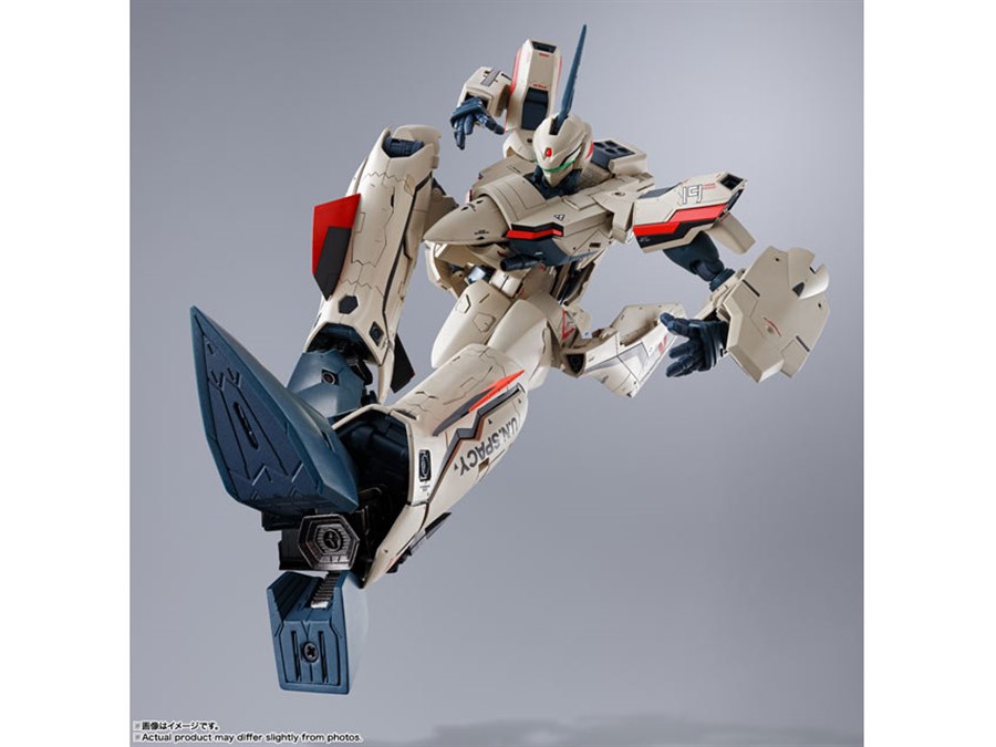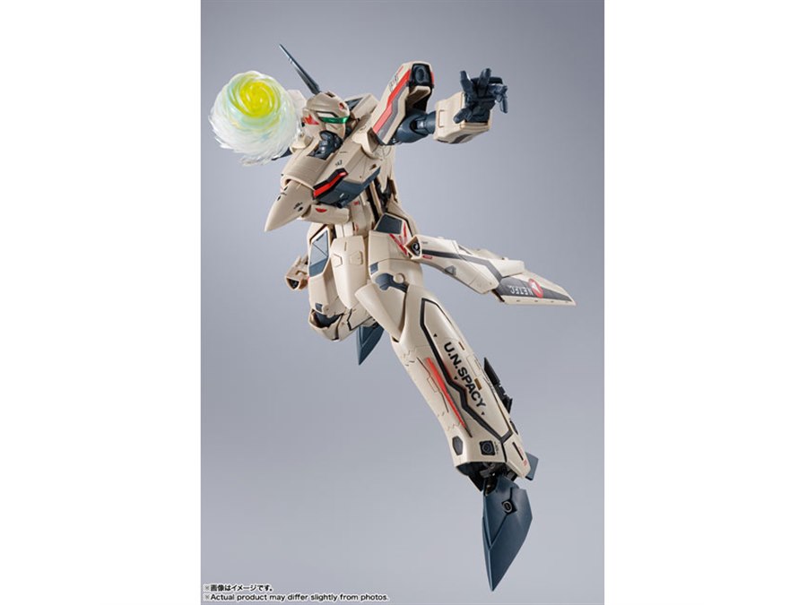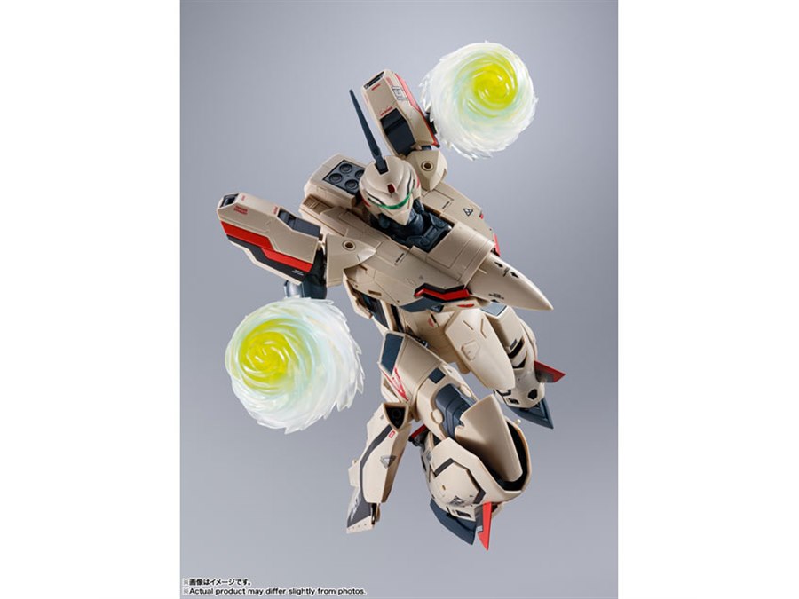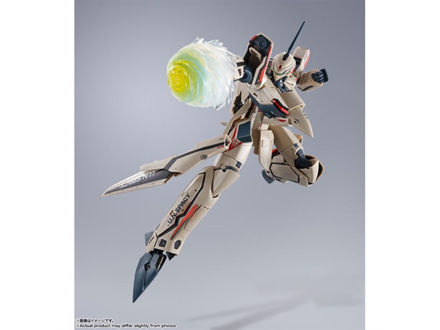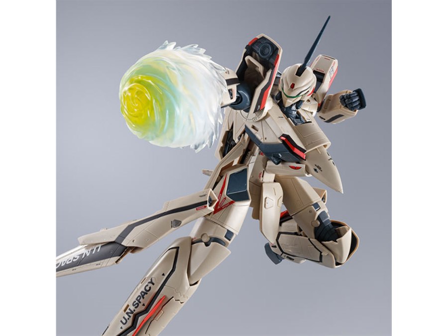 「マクロスプラス」より、主人公イサム・ダイソンが駆る「YF-19」がDX超合金で再び製品化。機体プロポーションや変形ギミックはそのままに、より劇中のデザインを意識して新規造形された「ピンポイントバリアパンチエフェクト」が付属する。