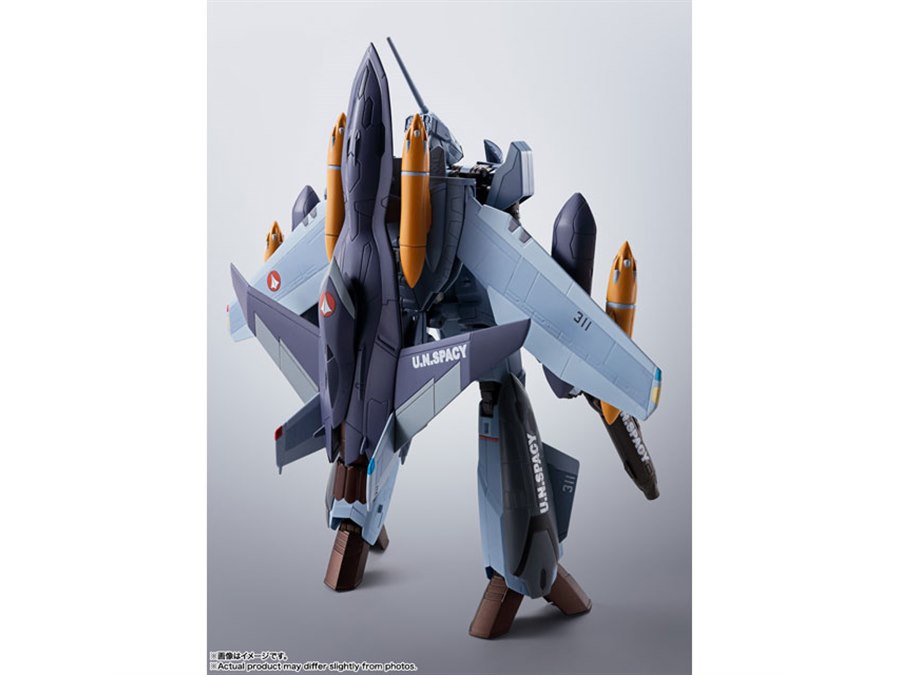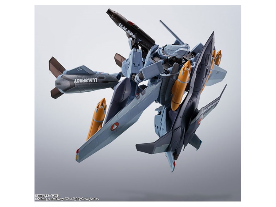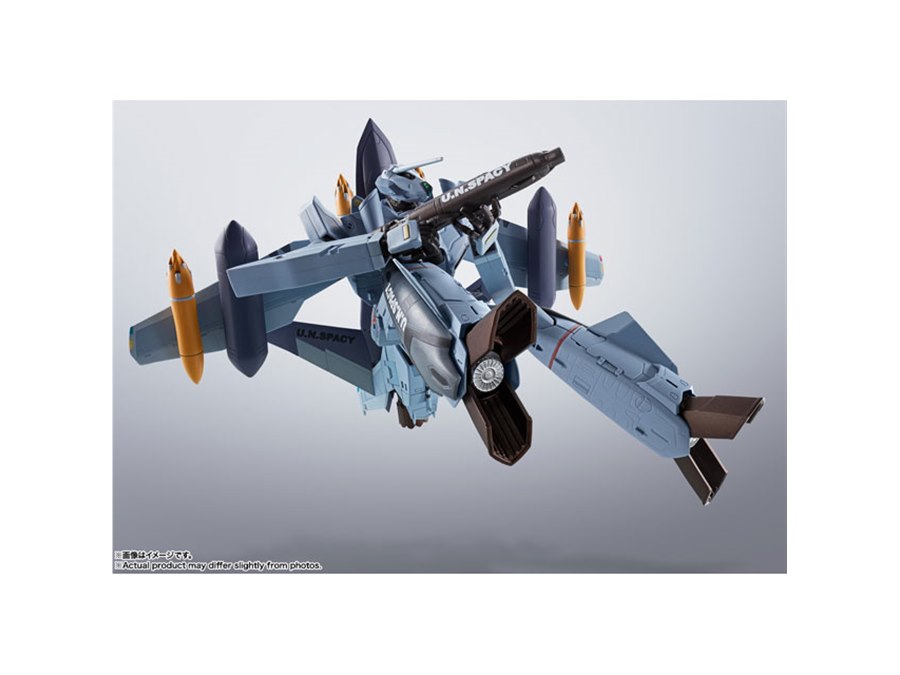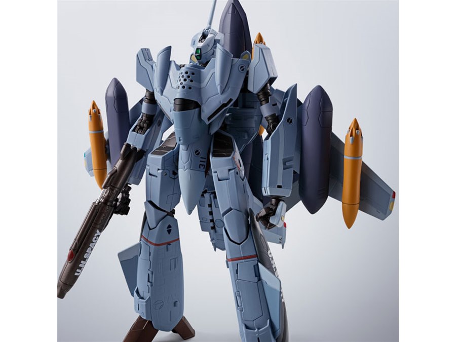 「マクロスゼロ」より、工藤シンの駆る「VF-0Aフェニックス」が、最終決戦仕様でHI-METAL Rシリーズに登場。「QF-2200D-B ゴースト」「8連汎用マイクロミサイルランチャー」「中射程機動ミサイルポッド」といった装備が新規造形で付属する。