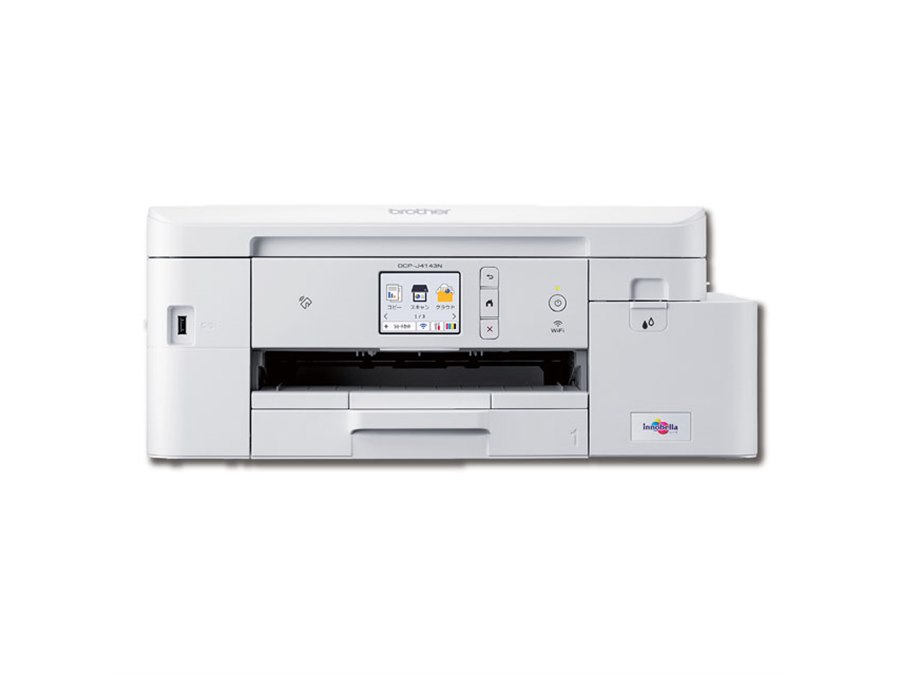 「DCP-J4143N」の本体サイズは435(幅)×180(高さ)×343(奥行)mm(突起部を除く)、重量は約8.8kg(インクカートリッジを含む)。市場想定価格は40,700円。