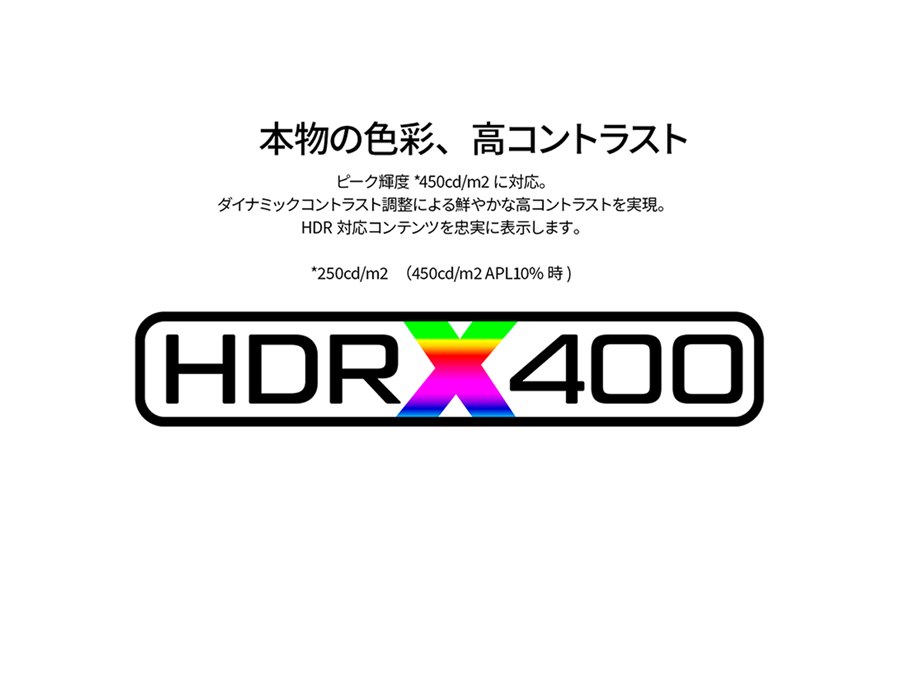 さらに、150万:1の圧倒的なコントラスト比を実現し、黒をより深く表現できるほか、HDR400相当の性能を備え、コンテンツを色鮮やかに映し出せる。AdaptiveSync(FreeSync)に対応するほか、フリッカーフリー(ちらつき軽減)、ブルーライト軽減モードにも対応する。