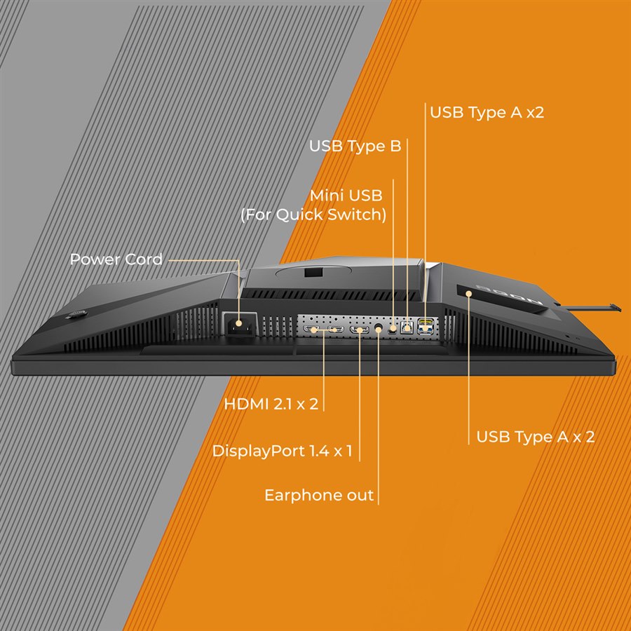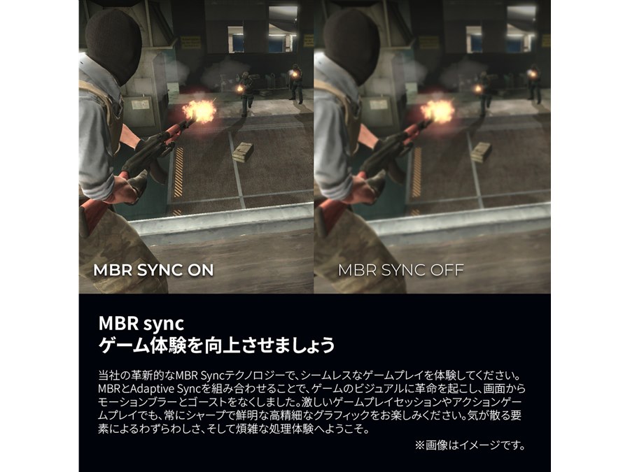 また、e-SPORT TNとも呼ばれるFast TNパネルを採用することで、モーションブラー(残像)を大幅に軽減し、より素早く正確な操作を可能としている。DisplayHDR 400に対応しており、鮮やかな色彩表現が行える。