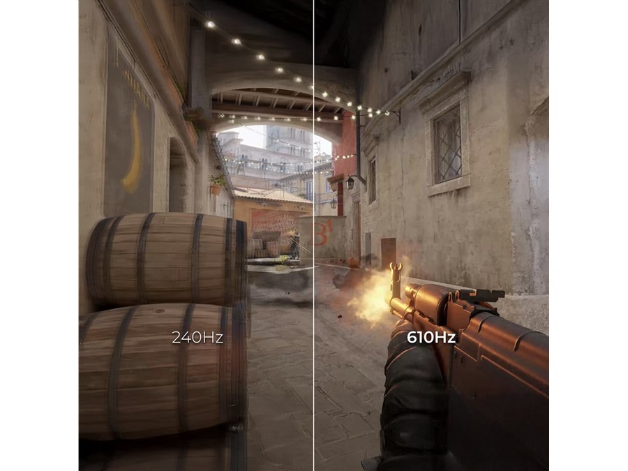 「Counter-Strike 2」をはじめとする高速展開のゲームで、競技的優位性を発揮するために設計されたeスポーツ向けモデル。610Hzのリフレッシュレートと0.3msの高速応答により、圧倒的なスピードと鮮明な映像を実現している。