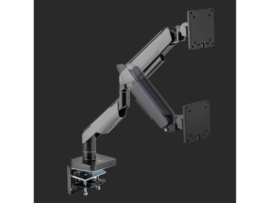 このほか、USB給電式を採用。対応機種は17〜49型の液晶ディスプレイ(湾曲ディスプレイ対応)、耐荷重は約20kg。本体サイズは138(幅)×661(高さ)×600(奥行)mm(最大値)、重量は約5.1kg。