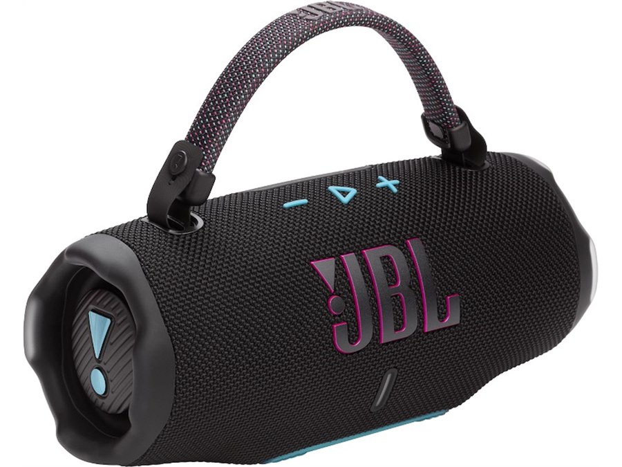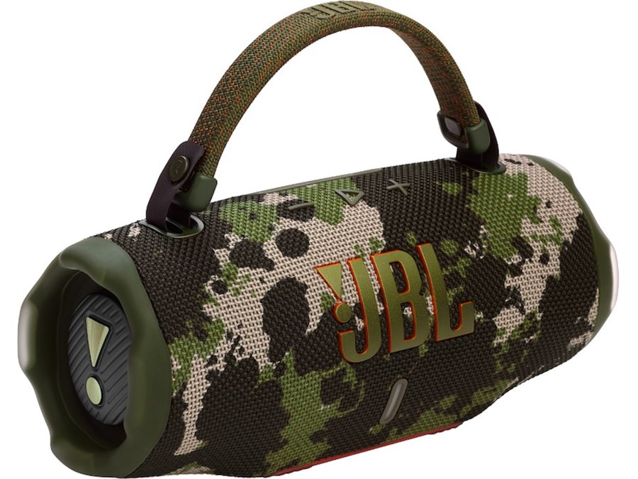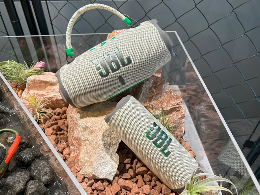 「Charge 6」は、モバイルバッテリーとしても使用できる「Charge」シリーズの最新モデル。本体の防塵・防水性能が「Charge 5」のIP67からIP68へと強化され、用途に応じて使い分けられるデタッチャブル・ストラップを新たに採用した。音質面では、ウーハーユニットを改良したほか、「Flip 7」同様、「AI Sound Boost」を搭載し、「Charge 5」に比べて10%深い低域再生を実現したという。