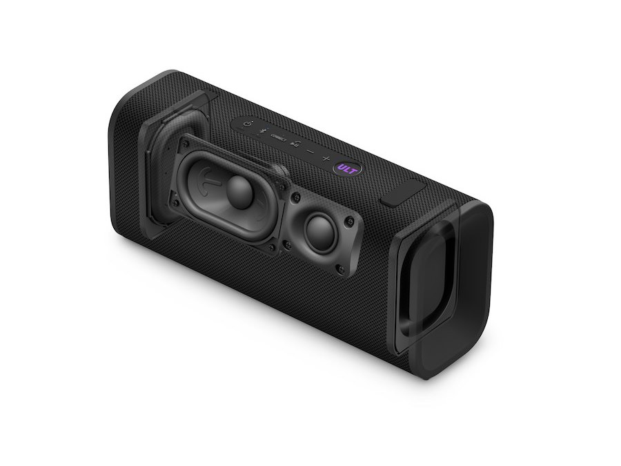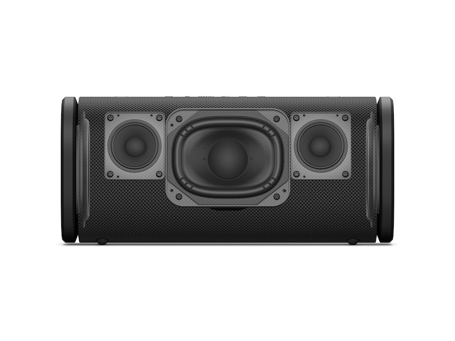 携帯性だけでなく高音質にもこだわった中型モデル「ULT FIELD 5」は、約79×107mmの「X-Balanced Speaker Unit」を搭載した矩形ウーハーと、直径約40mmの広帯域ツイーター×2、デュアルパッシブラジエーターを組み合わせ、深くパワフルな重低音とクリアなボーカルと音の広がりの両立を実現。「ULT FIELD 3」の7バンドを上回る10バンドのイコライザー設定も可能となっている。背面インターフェイスは、おすそわけ充電対応のUSB Type-C端子のほか、オーディオ入力端子も用意。Bluetoothの対応コーデックは、SBC、AAC、LDACとなっている。最大連続再生時間は約25時間。