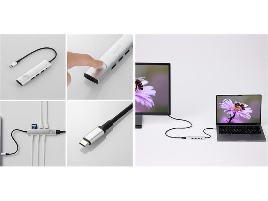 エレコム、USB 3.2 Gen1 Type-Aに対応した3/4ポートUSBハブ