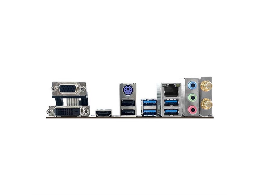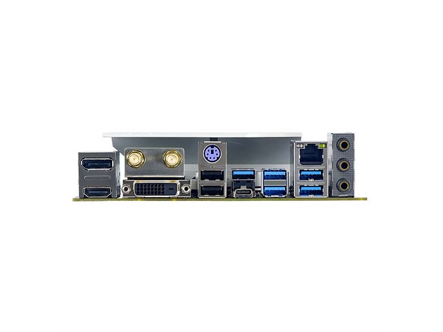 リアパネルのインターフェイスは、USB 3.2 Gen1×4、USB 2.0×2、ギガビットLAN×1、DVI-D×1、HDMI 1.4×1、アナログRGB×1などを装備する。