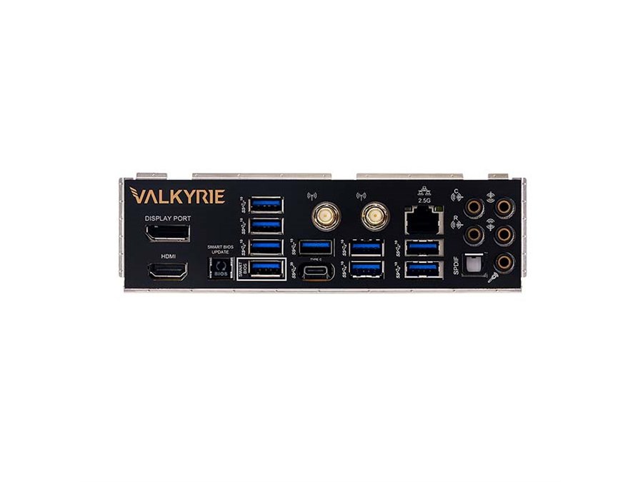 リアパネルのインターフェイスとして、USB 3.2 Gen2x2 Type-C×1、USB 3.2 Gen2×9、2.5ギガビットLAN×1、Wi-Fiアンテナポート×2、M.2(Key E)ソケット×1、DisplayPort 1.4×1、HDMI 2.1×1などを装備する。