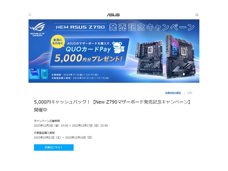 ASUS、5,000円分還元「New Z790マザーボード発売キャンペーン」は本日12月10日まで