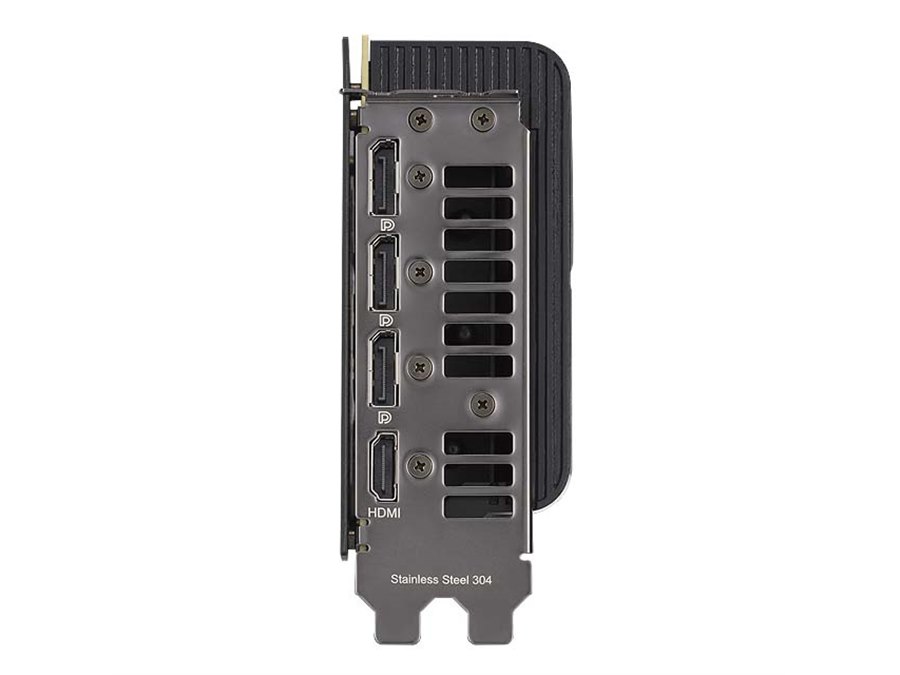 このほか、PC接続インターフェイスはPCI Express 4.0 x16。ディスプレイインターフェイスは、DisplayPort 1.4a×3、HDMI 2.1a×1を装備。補助電源コネクターは16ピン×1。カードサイズは2.5スロット占有タイプ。