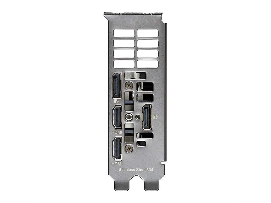 このほか、PC接続インターフェイスはPCI Express 4.0 x16。ディスプレイインターフェイスは、DisplayPort 1.4a×2、HDMI 2.1a×2を装備する。補助電源コネクターは6ピン×1。カードサイズは2スロット占有タイプ。