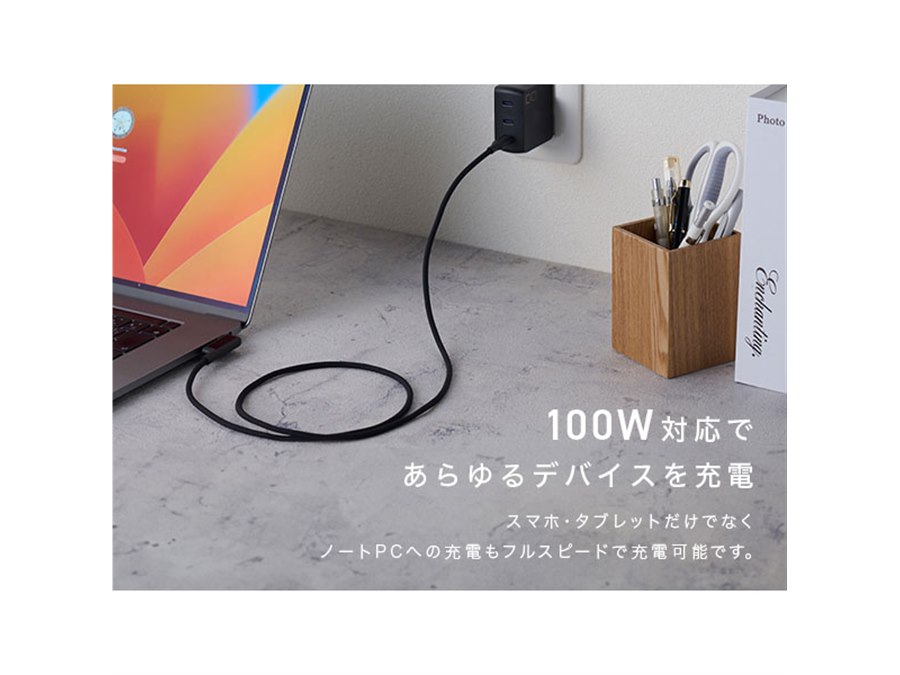リアルタイムでディスプレイに電力が表示される「ディスプレイ付きシリコンケーブル」の2mモデル。USB Type-C to USB Type-Cケーブルを採用し、最大100WのPD充電に対応する。
